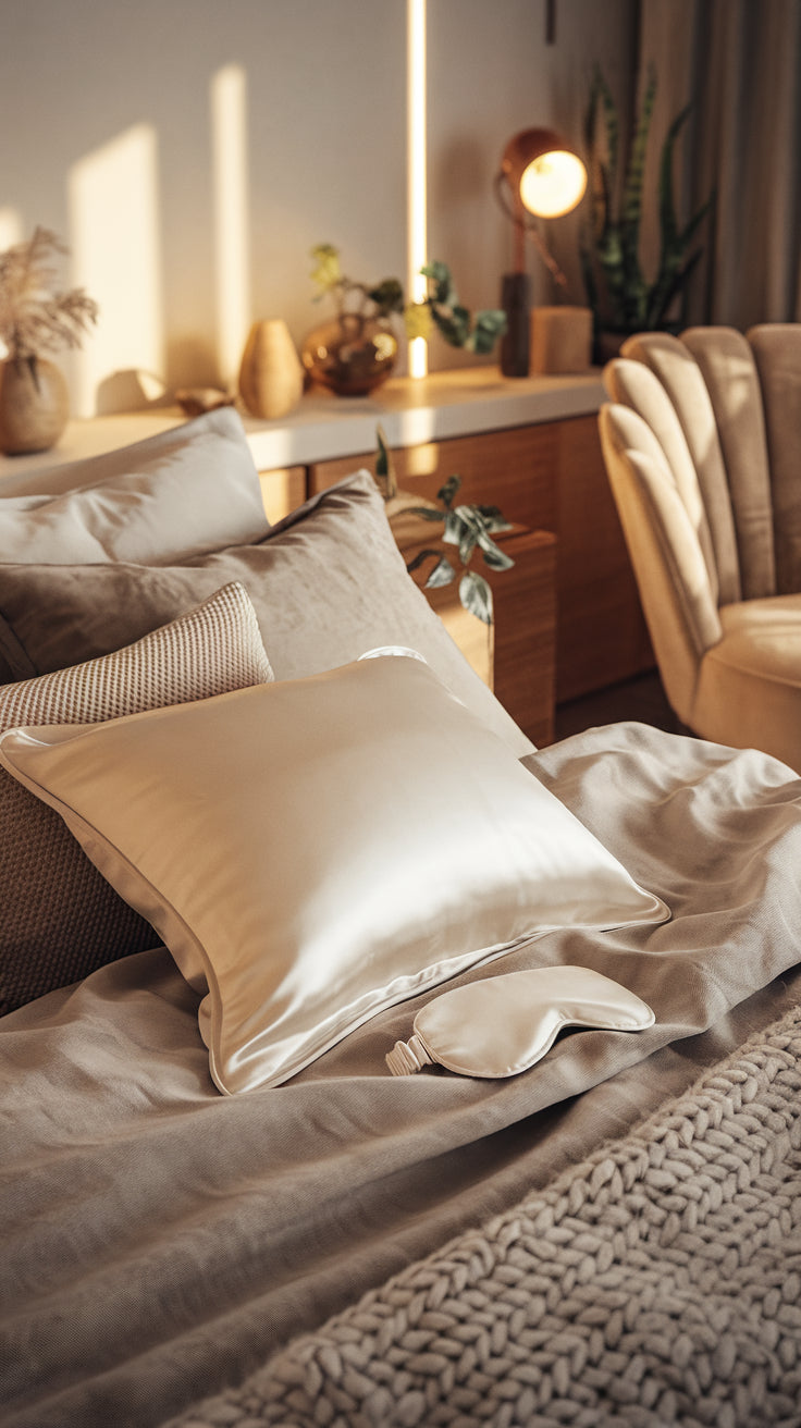 Premium Silk Pillowcase, crafted to reduce friction and protect your skin and hair. It helps minimize tangles, breakage, and wrinkles while promoting a smoother complexion. Thanks to silver ion technology, it boasts 99.7% antibacterial efficacy, preventing skin irritation, acne, and eczema.